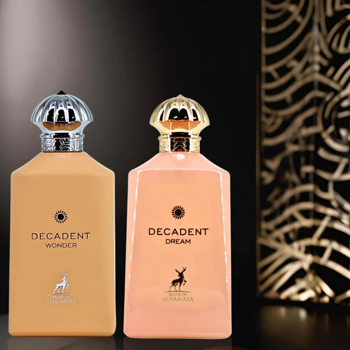 Decadent Wonder Her oleh Maison Alhambra menampilkan aroma bunga dan vanilla yang elegan. Bermula dengan black currant dan pear, diikuti oleh jasmine serta orange blossom, dan diakhiri dengan vanilla, amber wood dan musk yang tahan lama.