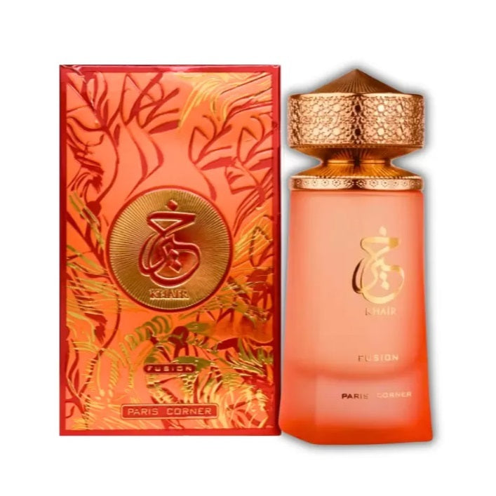 Khair Fusion – Eau de Parfum / 100 ml (Unisex) Khair Fusion by Paris Corner is a vibrant unisex fragrance that marries juicy fruits with soft florals and creamy woods. The scent opens with lively...