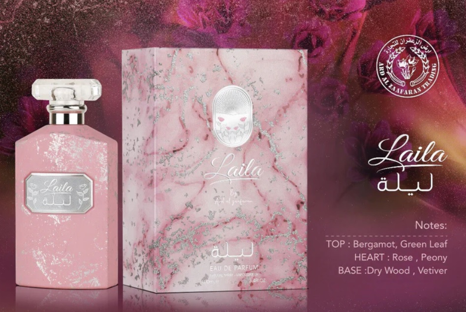 Laila Woman Perfume Laila Woman Perfume Pink Edp Ard Al Zaafaran 100ml Laila Perfume Rosy by Ard Al ZaafaranSize Type: Regular SizeType: Eau de ParfumFragrance Name: LEILAFormulation: SprayScent: RICHCountry/Region of Manufacture: United Arab EmiratesARD AL ZAAFARAN NEWEST RELEASE