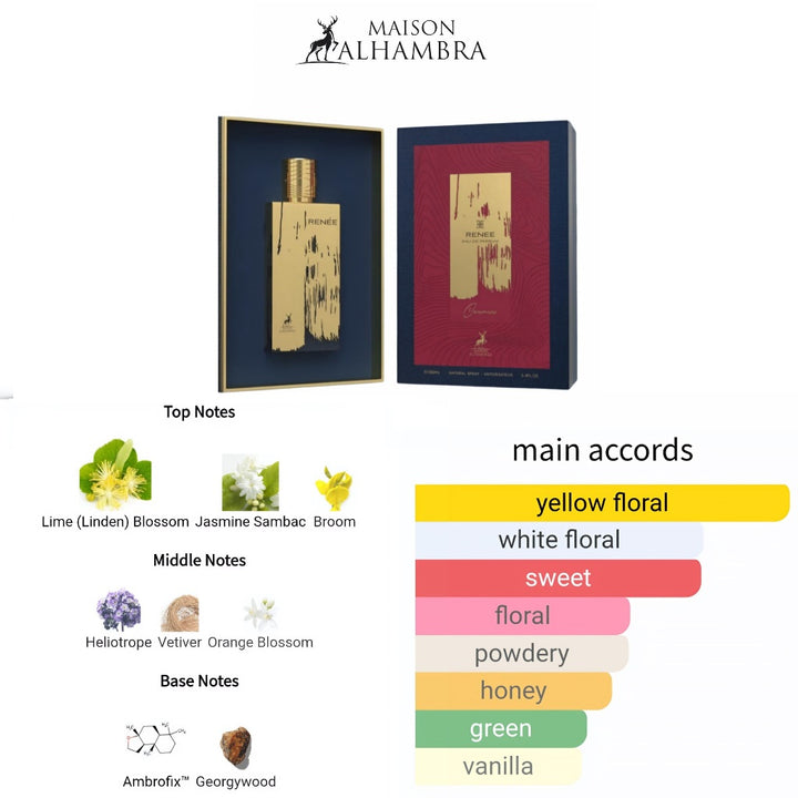 Renee Carmine is a luminous floral-gourmand crafted for anyone who loves modern elegance. It opens with a bright bouquet of orange blossom, jasmine and soft rose; the heart adds silky vetiver, creamy sandalwood and airy peony; and the base melts into intimate musk with powdery heliotrope for a smooth, long-lasting trail. Versatile for day or night, it balances sweetness and sophistication with polished projection.