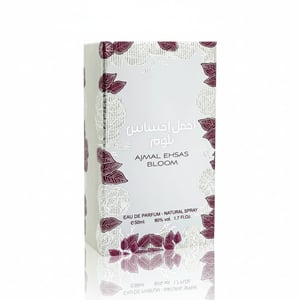 Ajmal Ehsas Bloom menggabungkan buah segar, bunga yang cerah dan asas krim yang lembut. Bermula dengan beri merah dan sitrus, diikuti rose, jasmine dan peony, kemudian kering kepada vanilla, musk dan nota kayu yang halus. Tahan lama dan sesuai dipakai setiap hari atau untuk acara istimewa.