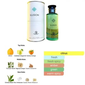 Illusion by Grandeur ni bau dia maskulin, segar & eksklusif. Campuran bergamot, amberwood dan musk bagi aroma yang elegan dan tahan lama. Sesuai untuk lelaki moden yang suka bau fresh woody amber yang nampak kemas dan berkeyakinan. Perfume ni memang perfume lelaki tahan lama – sesuai untuk kerja, malam atau majlis khas. Dapatkan perfume Grandeur original Malaysia – penghantaran cepat & jaminan ketulenan.