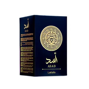 Asad oleh Lattafa menggabungkan aroma black pepper, tobacco dan pineapple di awalnya, diikuti jantung coffee, patchouli serta iris, dan berakhir dengan asas hangat amber, vanilla dan woods. Haruman mewah dan tahan lama untuk lelaki maskulin.