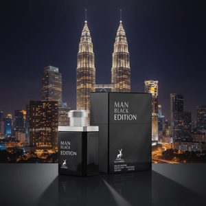 Man Black Edition by Maison Alhambra is a luxurious woody amber perfume that defines confidence and sophistication. It opens with bold bergamot and black pepper, blending into amber wood, leather, and lavender, and finishes with deep musk, patchouli, and vanilla. A long-lasting masculine fragrance that feels powerful, warm, and refined — perfect for day or night wear. Buy original Maison Alhambra perfume Malaysia – 100% authentic with fast delivery.
